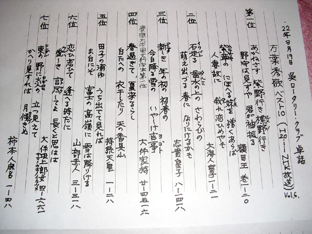 会員卓話にて大村会員万葉集を語る