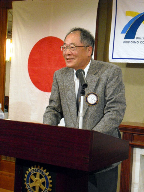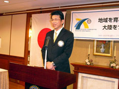 | 入会式 新会員を紹介する推薦者の宇都宮五郎会員 |