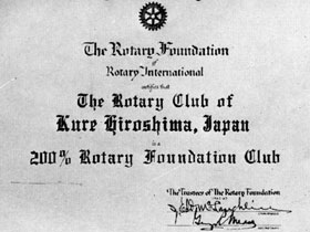 1962(S.37)11.15 日新製鋼呉工場見学 1963(S.38)02.07 「ロータリー財団奨学基金」200%クラブとしてロータリー財団から表彰を受けた