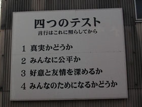 | 社内建屋にはロータリーの四つのテストが掲げてありました |