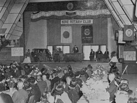 1951(S.26)11.5 チャーター伝達式で笠会長の挨拶 1952(S.27)1.10 星野ガバナーの公式訪問