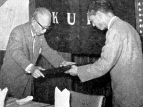 | 1962(S.37)07.05 前会長大之木小太郎君から新会長笠井明士君に認証状引継 |