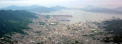 ゛大船や 波あたたかに 鴎浮く゛子規の句碑建つ港まち、造船のまち呉市は平和な工業都市、緑豊かな文化都市を目指しています。字型は錨に船を象徴 鴎たつ海原航る船は、平和清純の気のもと(天の白色)波濤を越えて(七つの海) 四通自在 希望と躍進の象(萌黄色)を表している。 |