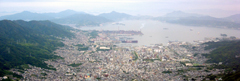 ゛大船や 波あたたかに 鴎浮く゛子規の句碑建つ港まち、造船のまち呉市は平和な工業都市、緑豊かな文化都市を目指しています。字型は錨に船を象徴 鴎たつ海原航る船は、平和清純の気のもと(天の白色)波濤を越えて(七つの海) 四通自在 希望と躍進の象(萌黄色)を表している。 |